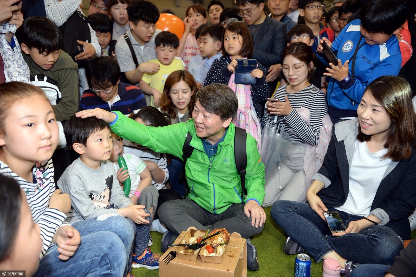 韩国国民之党候选人安哲秀在5月5日上午来到釜山会展中心与家长孩子们共同庆祝儿童节。(图片来源:视觉中国)