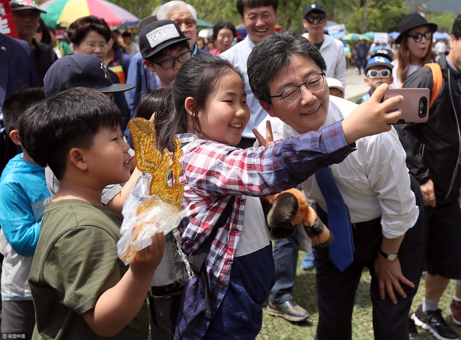 韩国正党候选人刘承旼儿童节与萌娃们亲密互动,场面其乐融融。(图片来源:视觉中国)