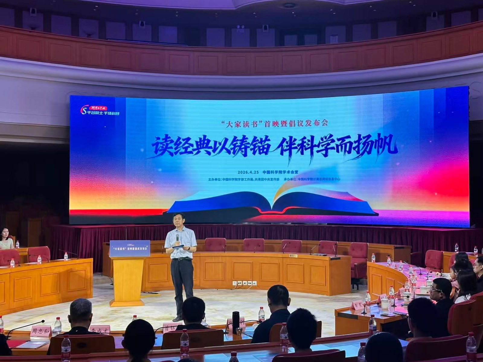2026年4月25日,在首个“全民阅读活动周”期间,由中国科学院学部工作局、共青团中央宣传部联合主办,中国科学院计算机网络信息中心承办的“大家读书”首映暨倡议发布会在中国科学院学术会堂举办。