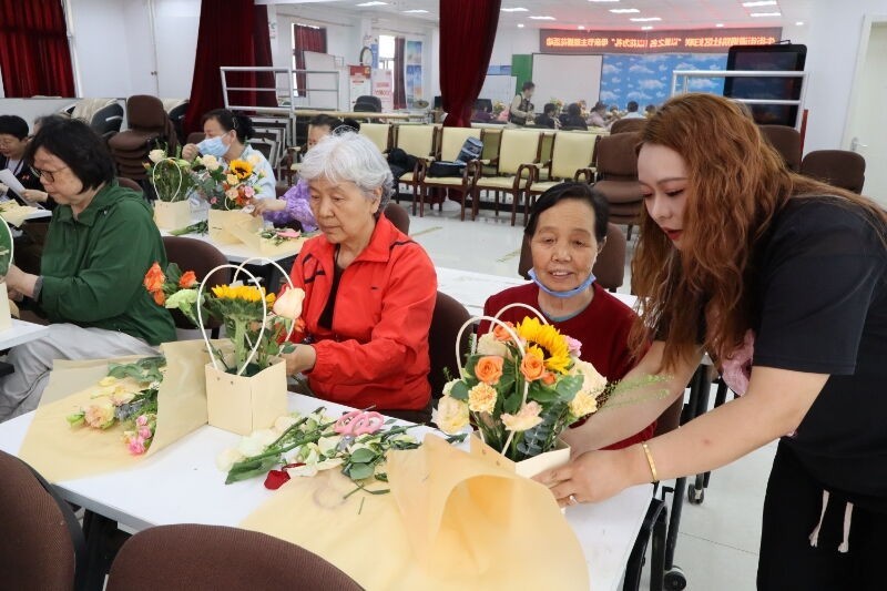 牛街钢院社区为辖区“母亲”送祝福 插花课上普及厨余垃圾回收知识_北京时间