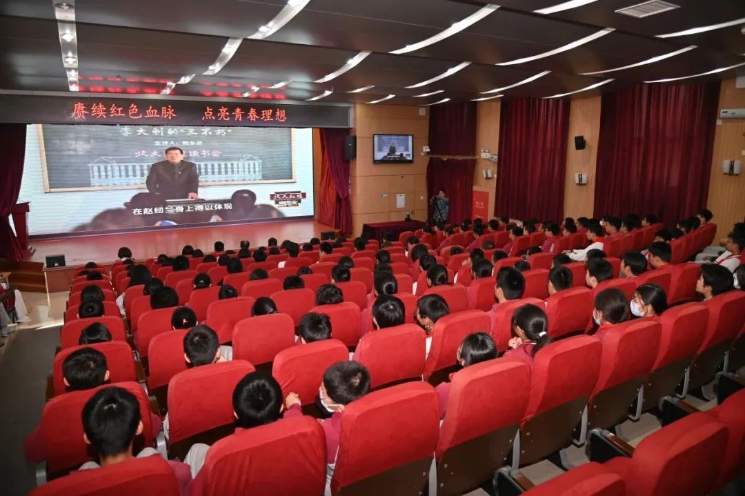 4月23日,在第30个“世界读书日”之际,中国共产党早期北京革命活动纪念馆“赓续红色血脉 点亮青春理想”——北大红楼“阅见初心”校园行活动在市二十七中礼堂举行。活动现场,师生们一同观看了《北大红楼读书会》精选片段,通过影像资料深刻感悟李大钊先生的高尚品德和优良家风。纪念馆讲解员结合视频内容与在场师生分享了李大钊先生的读书观,激励同学们传承先辈精神,树立远大理想。随后,纪念馆向市二十七中赠送了《在北大红楼听讲座》书籍。活动最后,全体师生共同诵读李大钊《青春》经典片段,铿锵有力的读书声回荡在整个会场,充分展现了新时代青少年传承红色基因、勇担时代使命的昂扬风貌。