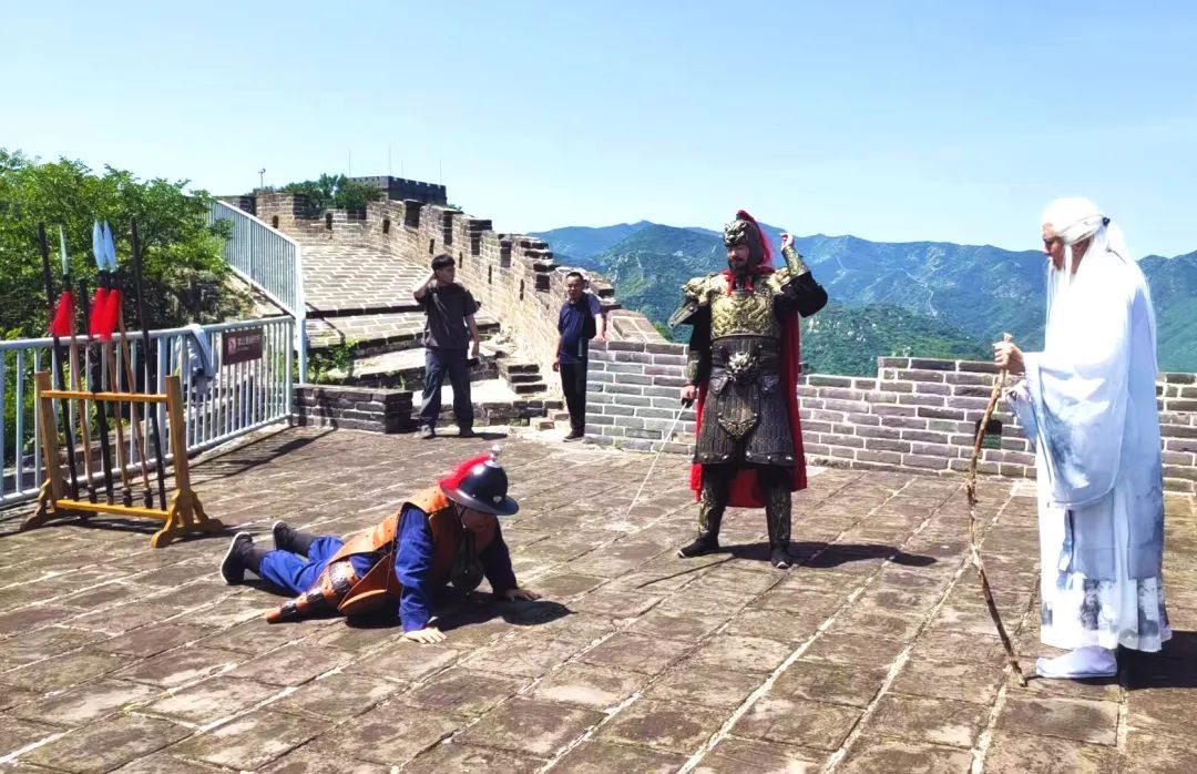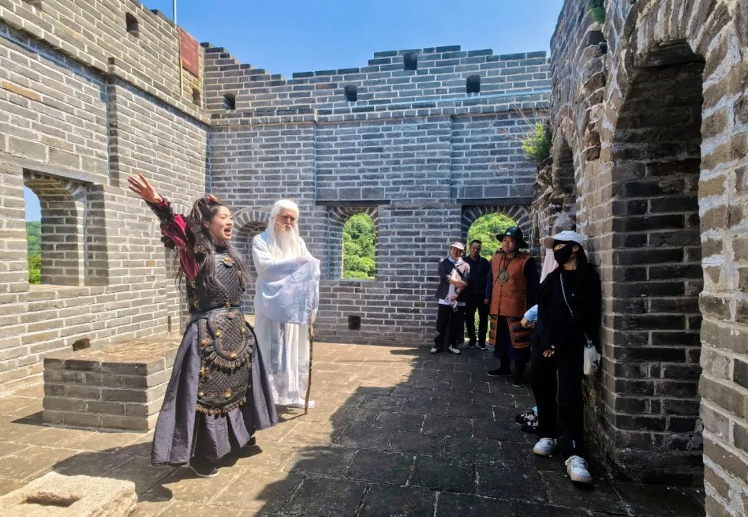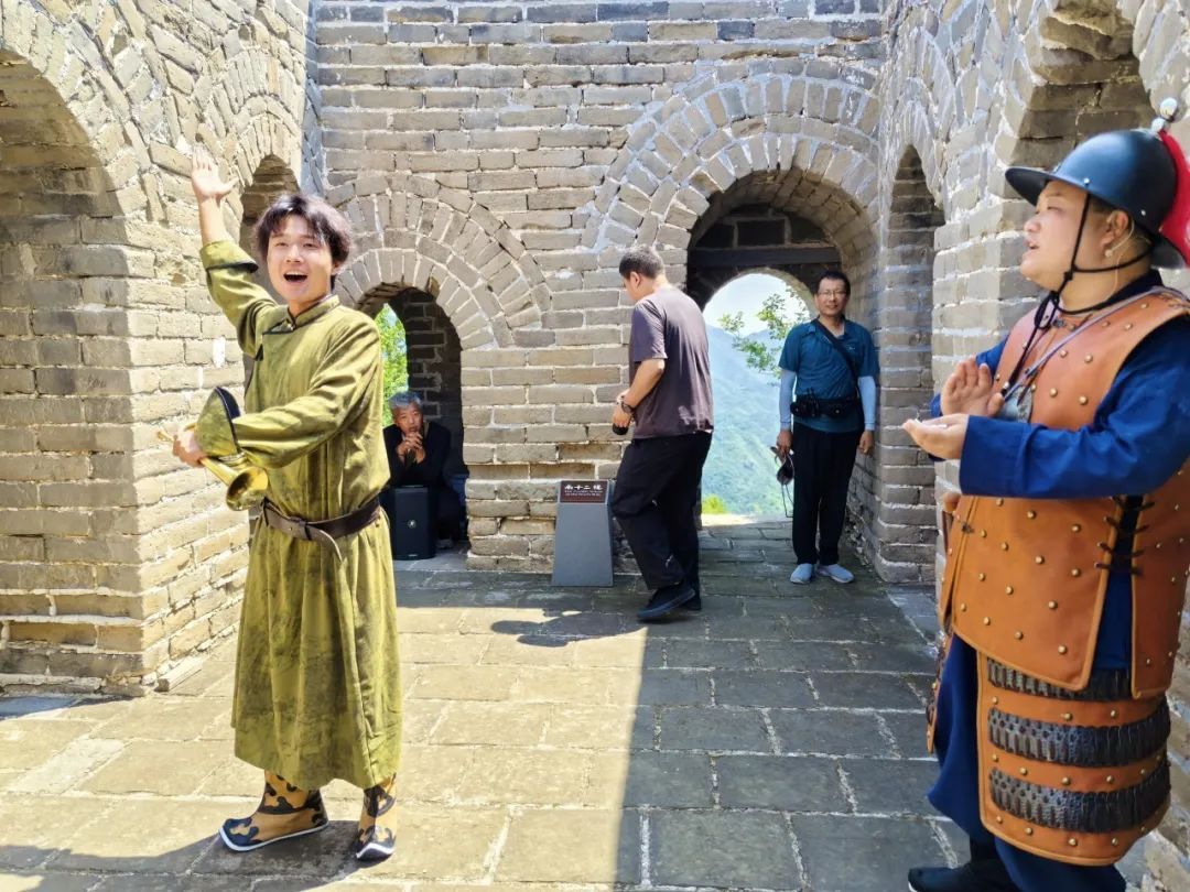紧随其后,头戴红缨盔、身披明甲的“明小兵”从隧道中跃出,憨态可掬地拱手行礼,用俏皮话与游客打招呼,让游客在诙谐互动中聆听长城的故事,触摸长城的千年脉动。