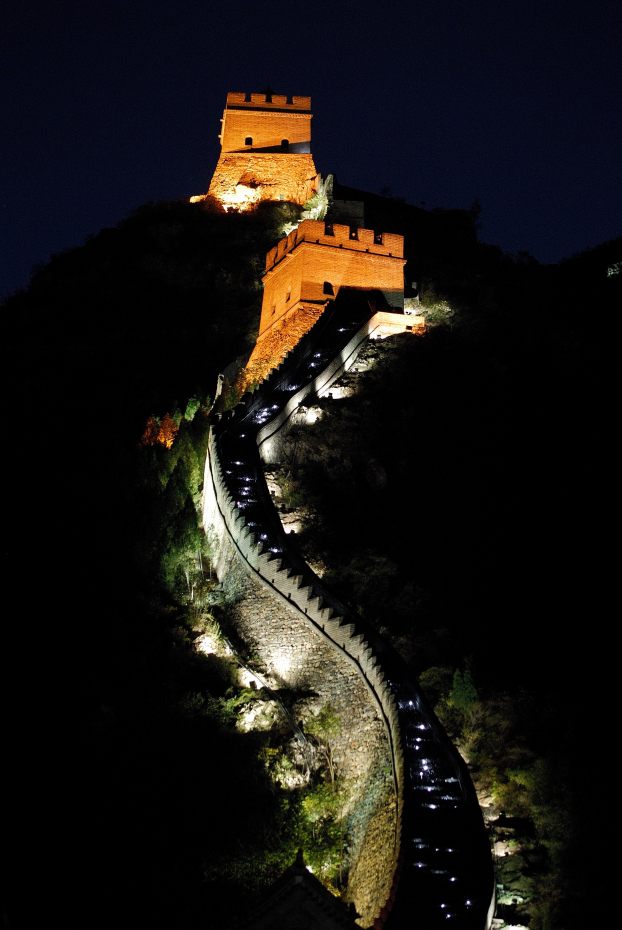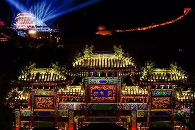 千年的长城在灯光的映衬下,瞬间变成了一幅宏伟壮丽的画卷,带着历史的沉淀和传承的久远,在夜晚展现出迷人的风采,让人陶醉其中。