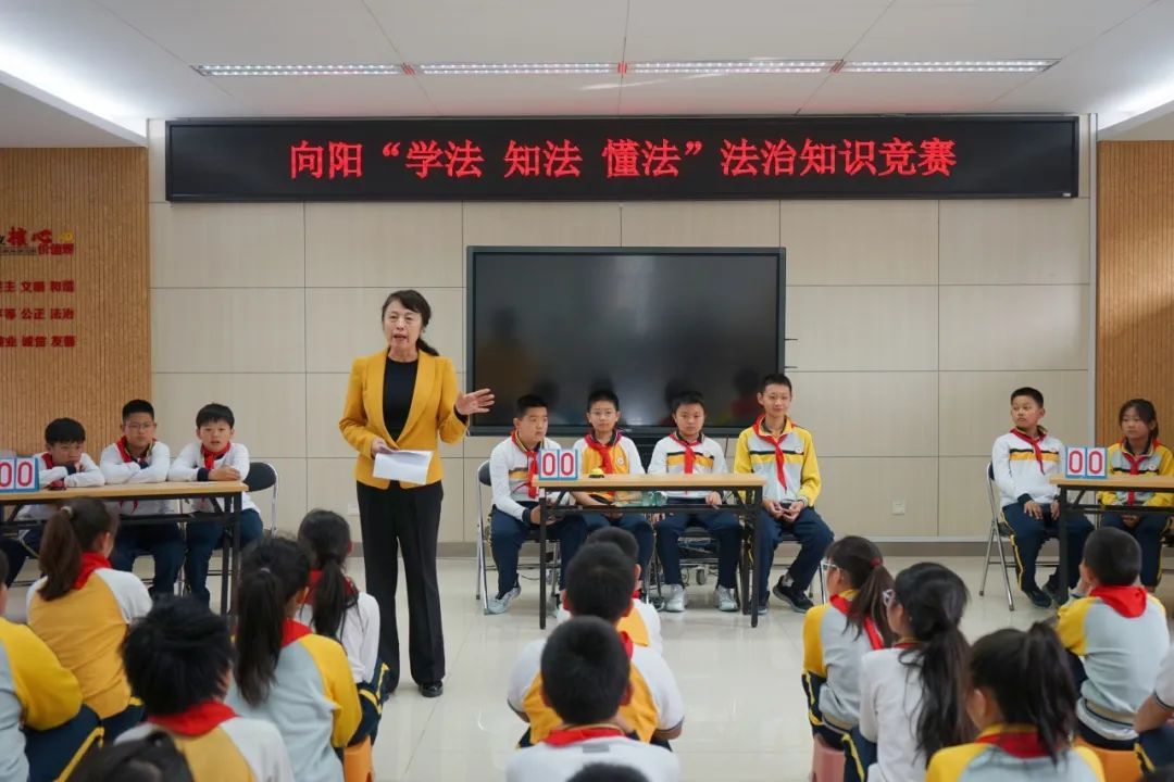 活动首先进行鲁谷街道关工委法治宣传月启动仪式,王宏芬代表区关工委进行发言讲话。随后开展普法知识竞赛活动,向阳小学共计76名学生参加,分为红、黄、蓝三个队。竞赛分为必答题、抢答题以及趣味十足的互动环节,吸引了众多学生积极参与,现场高潮迭起,气氛热烈。
