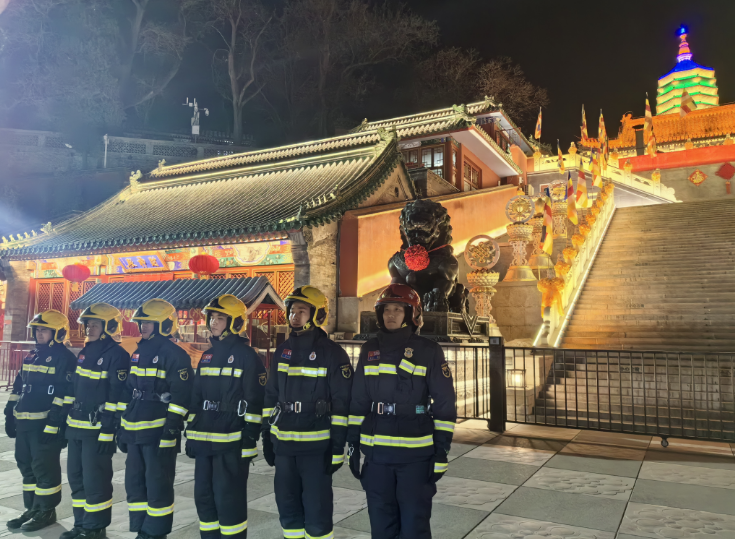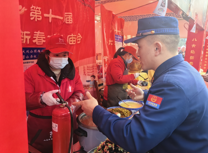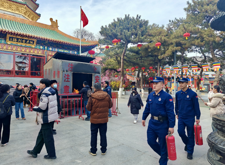 在八大处新春文化庙会,在人群中坚守岗位的“蓝朋友”成为了一道独特的风景,实现了除夕、初一期间重要现场、重要时段零火灾、零事故。