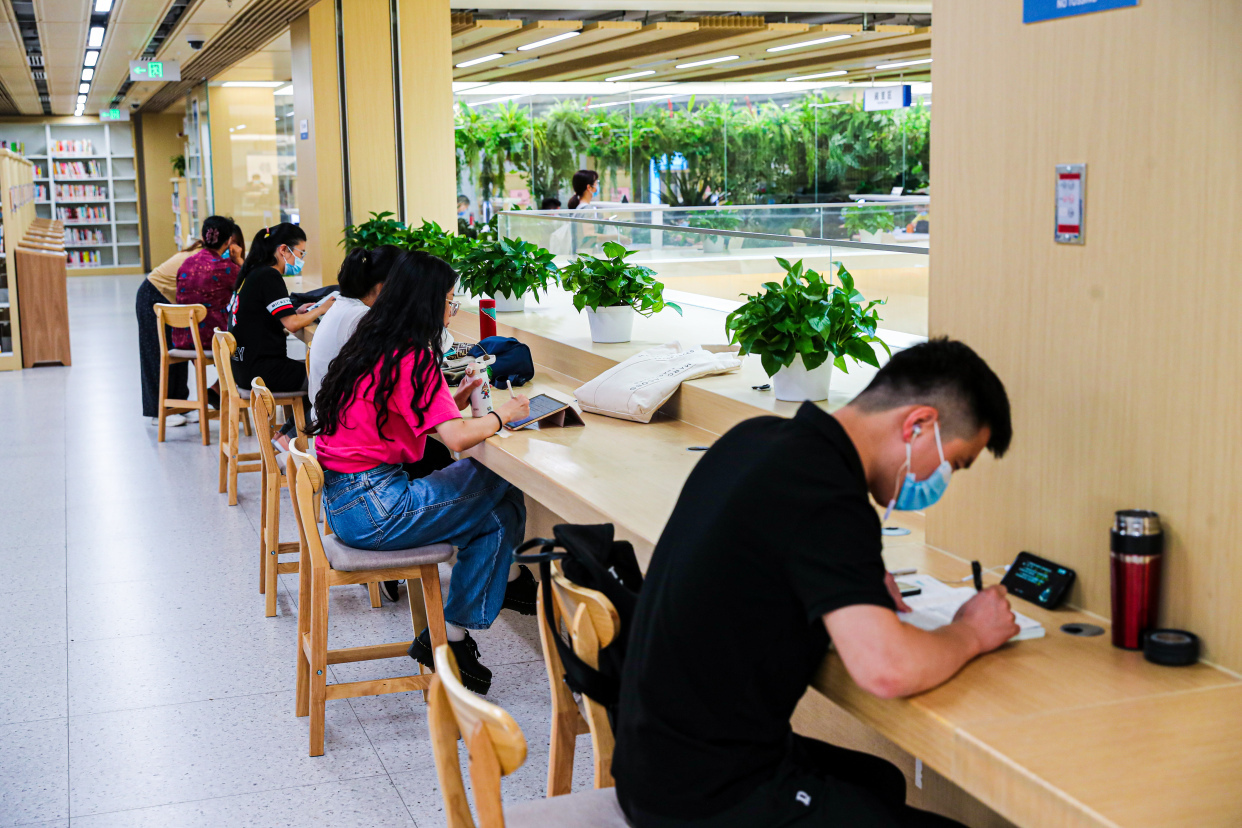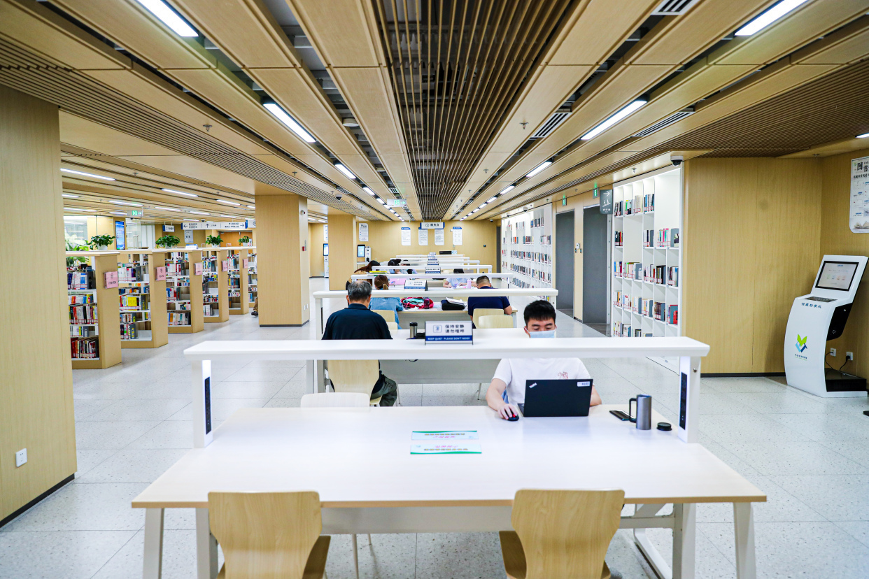 这个暑假,王艳洁每天都会带着11岁的女儿玥玥来这里学习,玥玥坐在书桌旁认真地做着语文作业,王艳洁则在一边批改着女儿的算术题。“自从图书馆开馆我们每天都来,发现孩子在这里更容易进入学习状态,比在家里更有效率,而且这边书桌上安装的都是护眼灯,非常人性化。”王艳洁告诉记者,“写作业之余,孩子还能选几本喜欢的书看看,比看电视玩手机有意义太多了,希望她能在图书馆里培养爱读书的好习惯。”