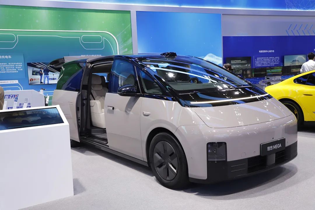 理想汽车展出首款纯电MPV车型MEGA及自研智能驾驶计算单元、车身域控制器等核心技术组件,科技感十足。