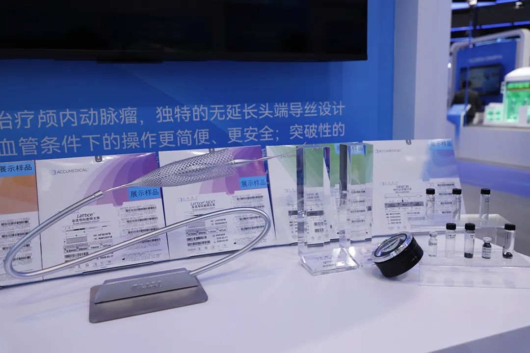 艾柯医疗器械(北京)股份有限公司展示了自主研发的创新产品——血流导向密网支架,这款支架可用于治疗出血性脑卒中。产品经国家药监局创新审查程序获批上市,搭载独有机械球囊输送系统,将颅内动脉瘤治疗带入“自动挡”时代,是目前获批适应证范围最广、禁忌证最少的同类产品。