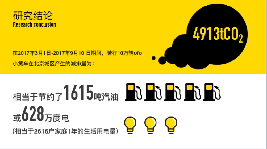 该报告以ofo小黄车大数据平台运营采集的海量数据为基础,对共享单车投放的节能减排水平进行了科学研究,中国循环经济协会及中国质量认证中心参考中国自愿减排项目方法学,并结合北京实际交通出行情况,对其基准线情景及骑行产生的减排量进行研究。