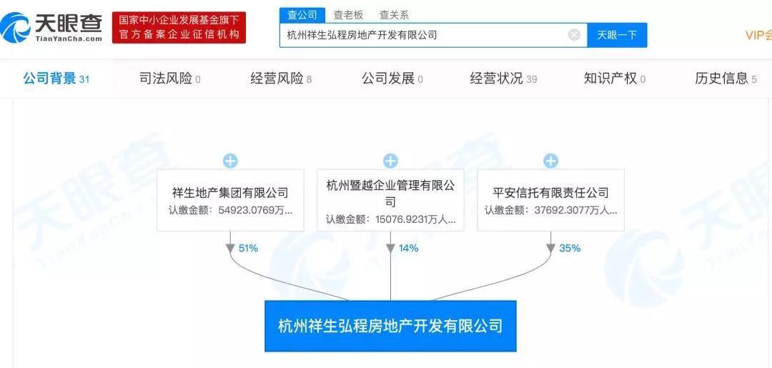 时间财经查阅天眼查发现,祥生弘程成立于2018年1月。祥生地产持股51.00%为第一大股东;平安信托有限责任公司持股35.00%为第二大股东;杭州暨越企业管理有限公司持股14.00%为第三大股东,杭州暨越企业管理有限公司也为祥生地产全资子公司。(北京时间财经 刁艳艳)