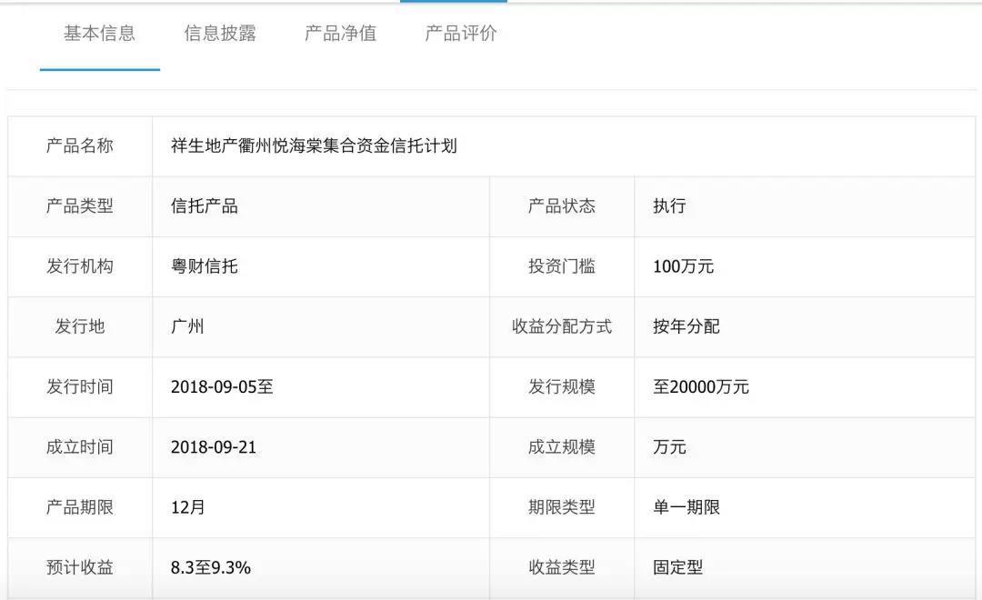 网站介绍,该产品融资的资金用途为向衢州祥生弘瑞发放信托贷款,用于其位于浙江省衢州市荷花中路以西、松园菜场东侧、花鸟市场北侧的“祥生·悦海棠”房产项目的开发建设。