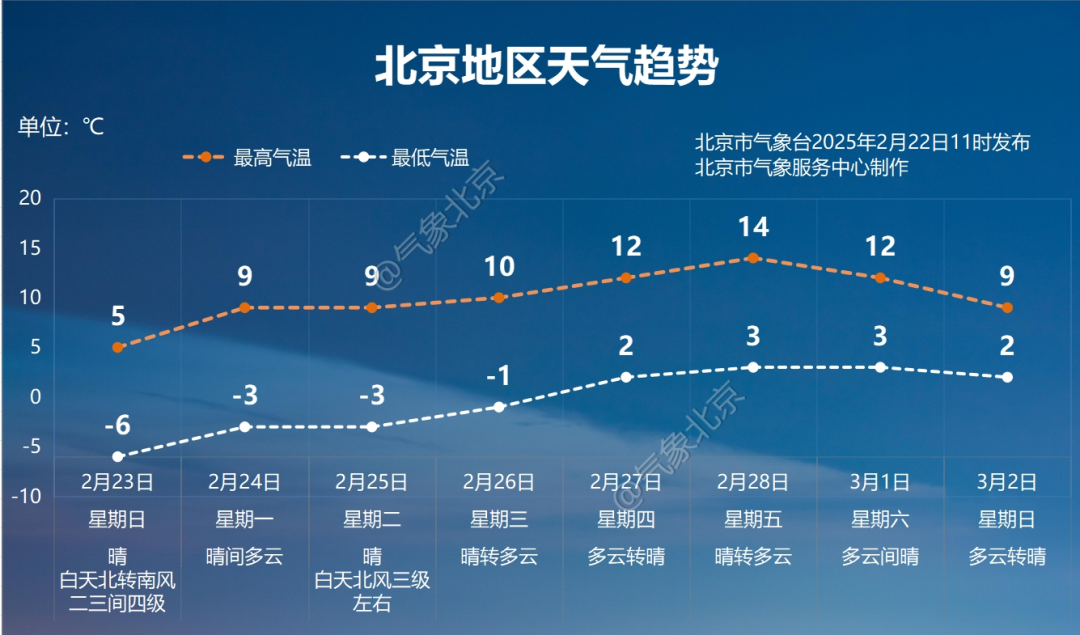 下周开始,天空继续以晴朗派为“掌门”,气温一路小跑,寒意渐消,尤其28日最高气温将升至14℃左右,派发一波初春体验卡。