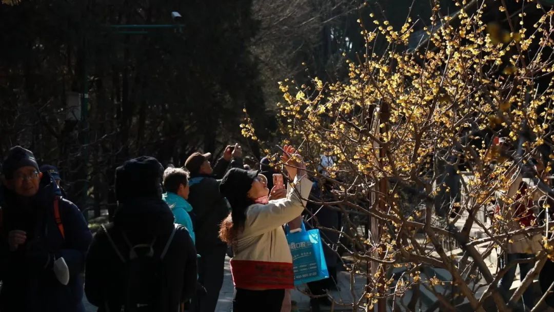 和好友一起前来拍照打卡的陈先生笑着说道:“我每周都要来颐和园。乐农轩在初春时最美,因为有蜡梅,金色花朵被视为‘报春信使’,让人感受到时光流转的仪式美。”
