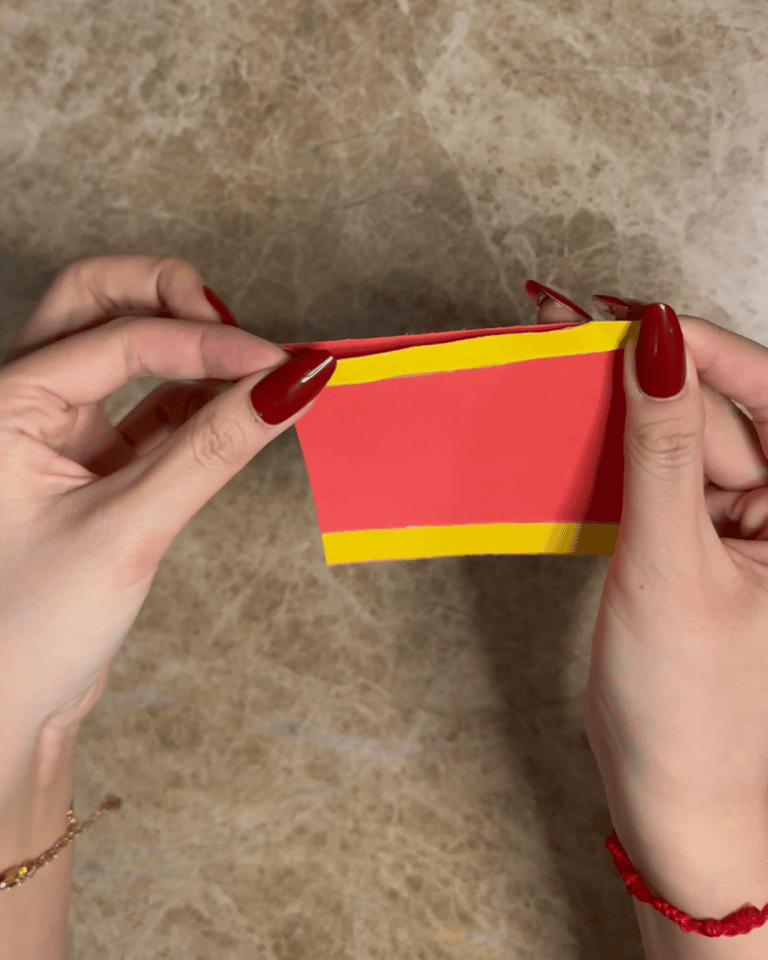 步骤1:将黄色卡纸剪成长条状,贴在红色卡纸上。