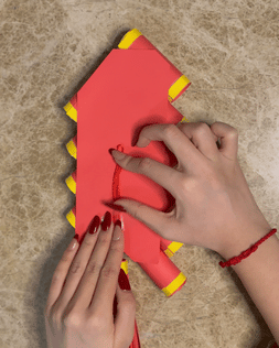 步骤8:用胶带把吊穗和红线贴在背面。