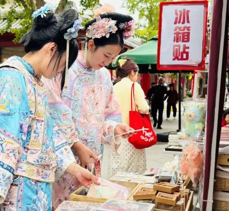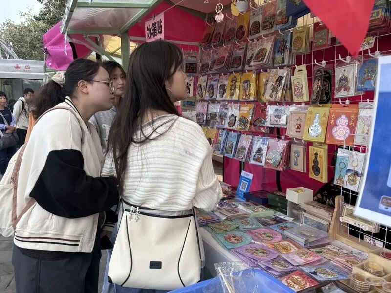 市民游客在东方美学手作和非遗文创中,感受传统工艺的精妙。“今天天气也好,心情也好,带着我妈一块出来遛一遛。挺好的,商品很多,琳琅满目,能体现北京的特色。”“我们是从湖南过来的,听说颐和园很漂亮,想来见识一下,真的很美。市集有挺多东西的,冰箱贴确实很漂亮,我会带一点回家。”