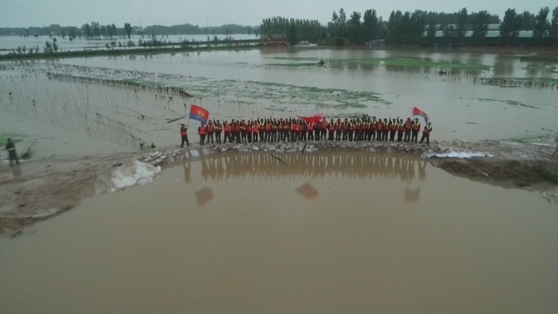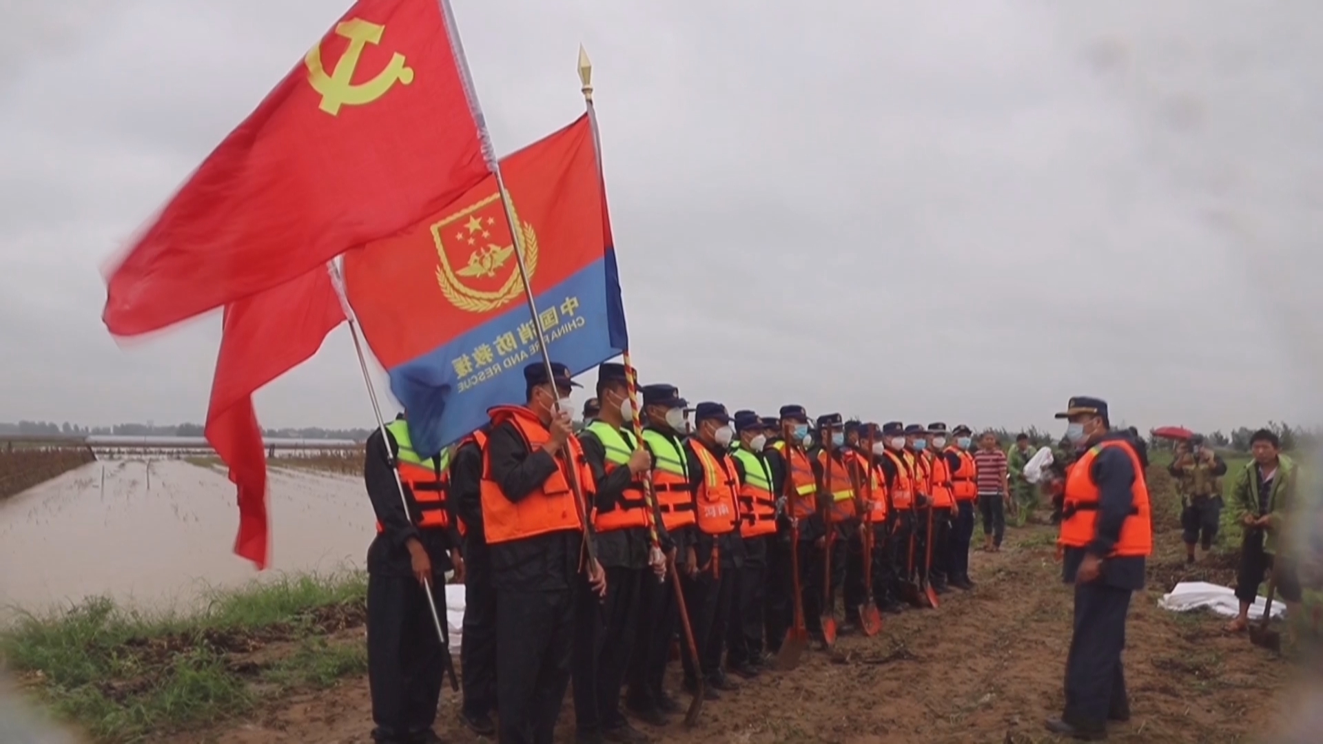 当天下午5点30分,经过消防指战员、尉氏县干部群众近10个小时的合力奋战,庄头镇高庙北堤20米长的决口成功合拢,险情排除。