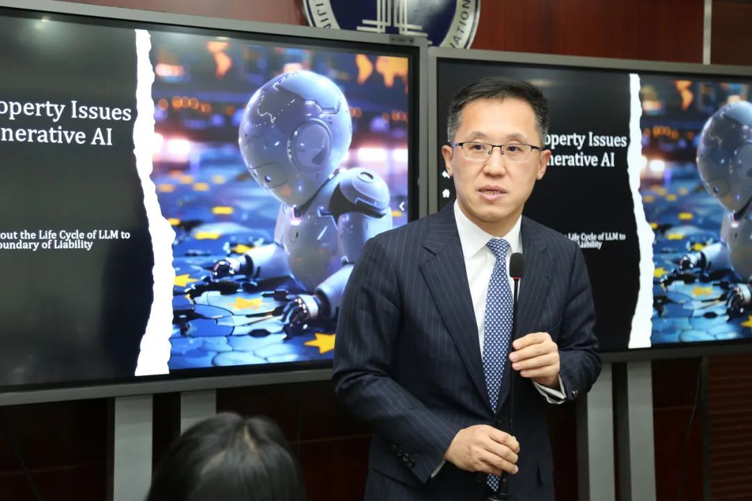 在业务交流环节,围绕“与生成式人工智能相关的知识产权问题”话题,鸿鹄(新加坡)律师事务所资深律师Jolie Giouw,新加坡律师公会执行委员会及理事会成员Lim Seng Siew,北京律协数字经济与人工智能领域法律专业委员会副主任王一楠、副秘书长幸自奇等四位律师分别进行了主题分享。