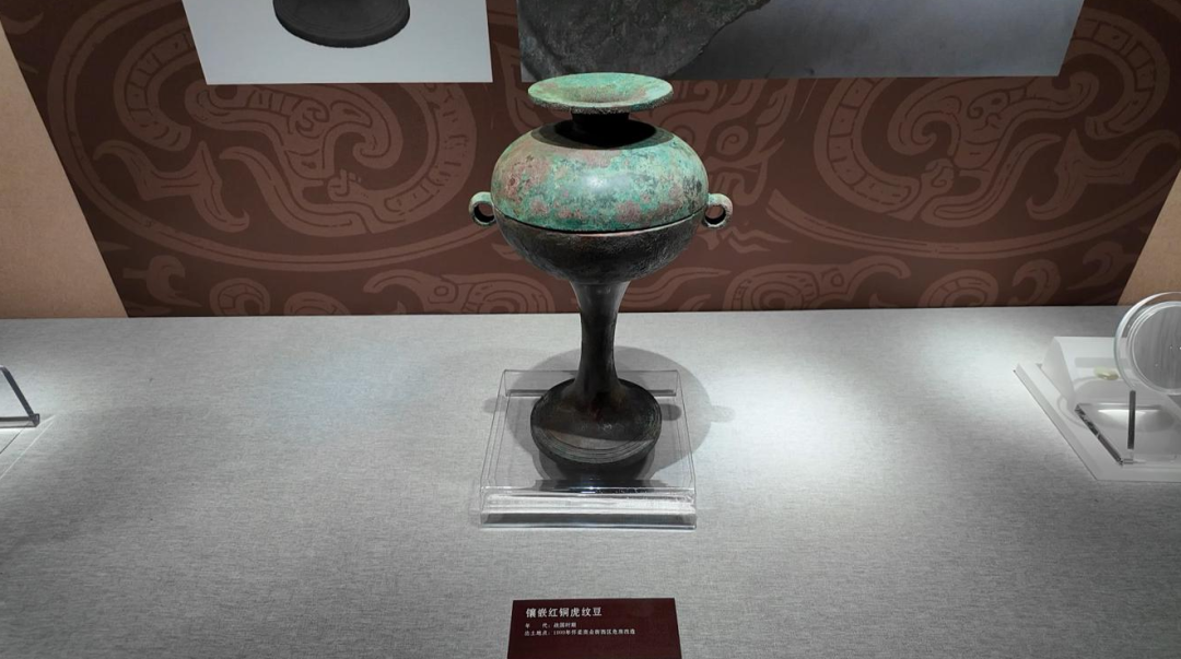 商业街西区出土的战国时期镶嵌红铜虎纹豆