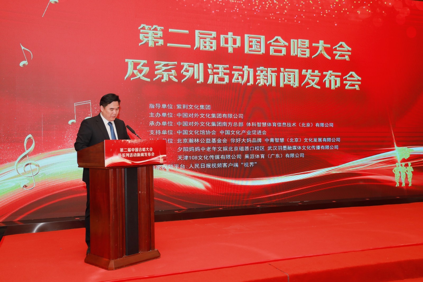 2025年4月8日下午,第二届中国合唱大会系列活动之"中老年音乐之声"新闻发布会在北京昆泰嘉华酒店二楼宴会厅举行。本次活动由中国对外文化集团有限公司等单位联合主办,吸引了全国各地合唱团体代表、文化艺术界人士及媒体记者等百余位嘉宾到场。