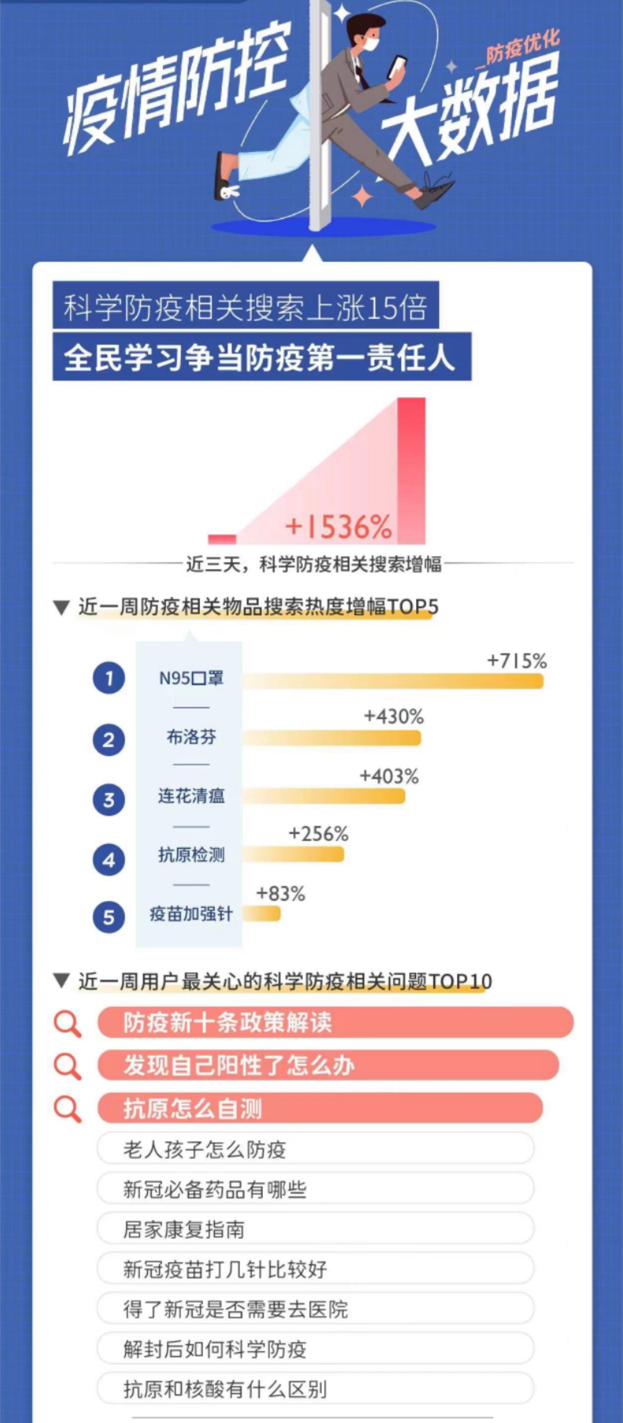 热搜防疫大数据:科学防疫相关搜索上涨15倍 全民争当防疫第一责任人。