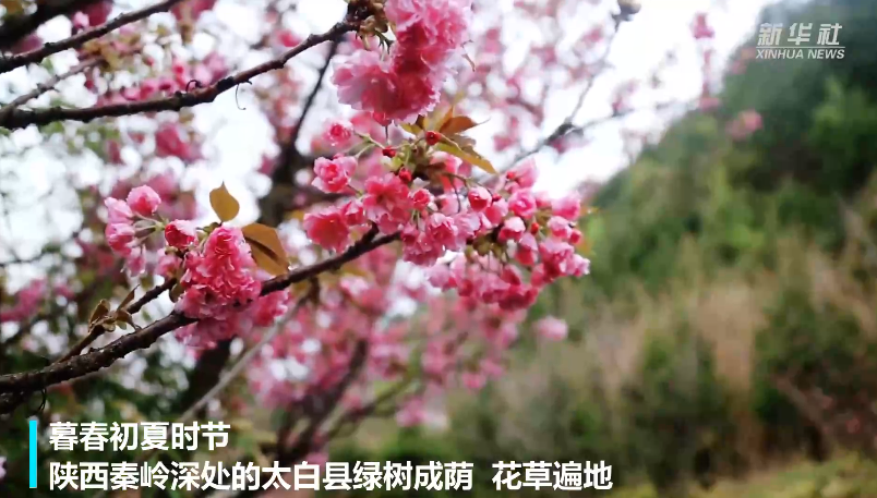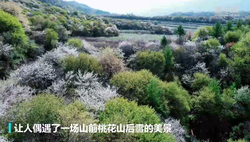 暮春初夏时节,陕西秦岭深处的太白县绿树成荫、花草遍地。山川沟壑间桃花、李花,芝樱花各色花儿竞相绽放,暗香涌动。连续几日的降雨过后,秦岭主峰南北山脉上落下了一层薄薄的暮雪,让人偶遇了一场山前桃花山后雪的美景!