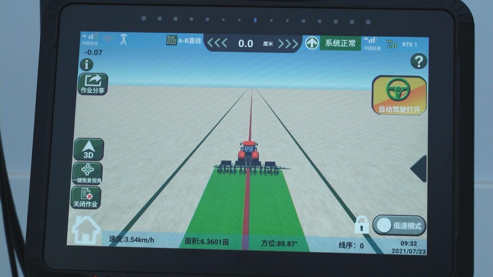 功能如此强大的北斗卫星,也给我们的生产生活提供了很多便利,比如这辆能实现精准控制的拖拉机,和普通拖拉机有很大的区别,它的屏幕、方向盘都是电动控制的,即便里面不坐人,也完全可以实现自动驾驶。