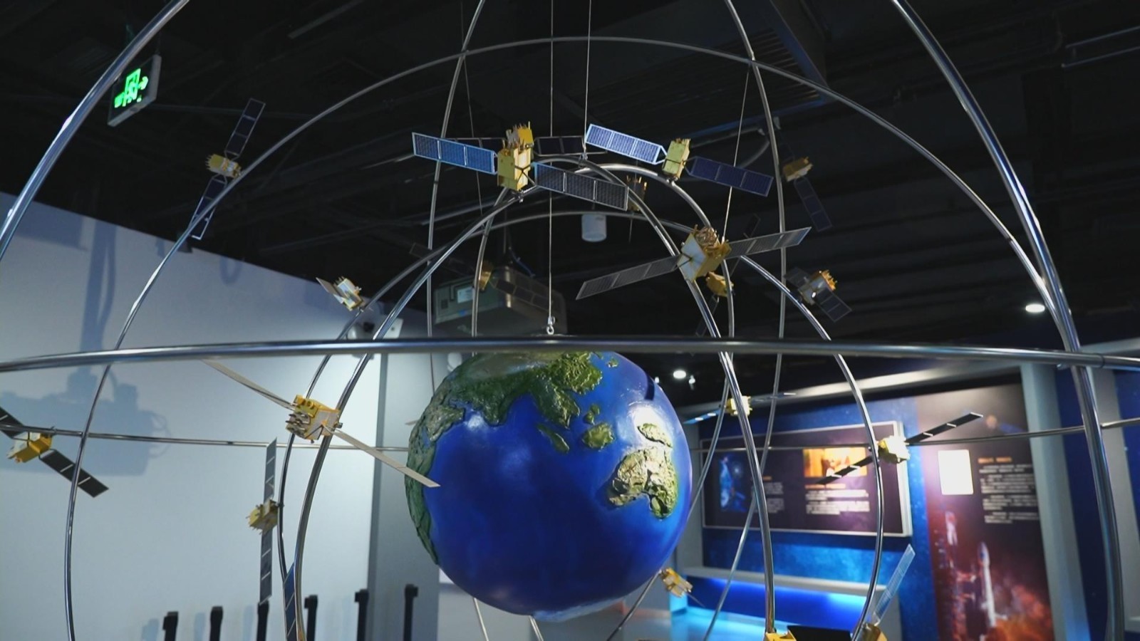 北京合众思壮科技股份有限公司战略合作部总监黄娴介绍,这里有一个模拟的北斗星座,可以看到在地球的上空,北斗三号大概有30颗卫星,以手机为例,可以说它是一个卫星导航定位终端,通过接收北斗卫星发射过来的信号,这个终端里的芯片等一系列元器件,把信号加以解算,提取出我们想要的位置信息、速度信息和时间信息,有了这些信息就可以来提供导航、定位等一系列服务了。