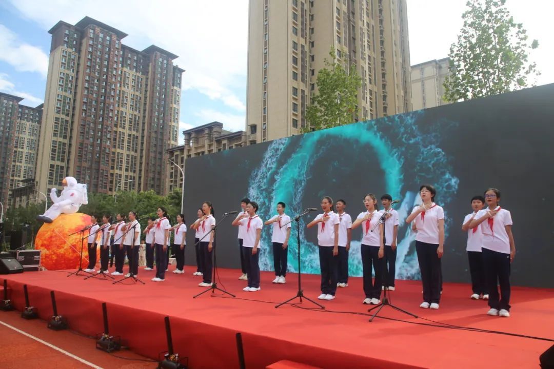 学生们唱响《星辰大海》,整齐嘹亮的歌声传递了他们的青春与梦想,开学典礼正式开始。