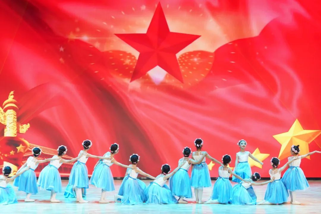 小学部星禾舞蹈团的同学们表演舞蹈《成长在祖国的怀抱里》。孩子们的笑容,温暖而明媚,他们在祖国的怀抱中茁壮成长,汲取着知识的力量。