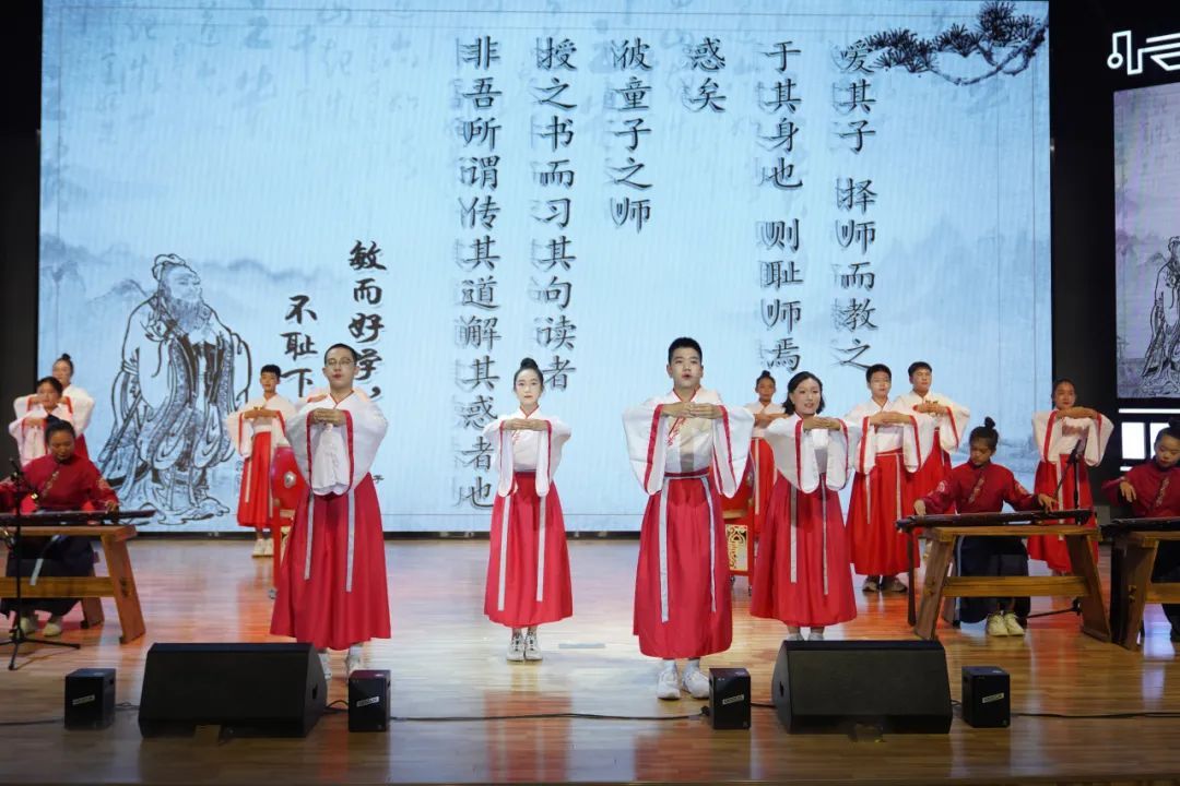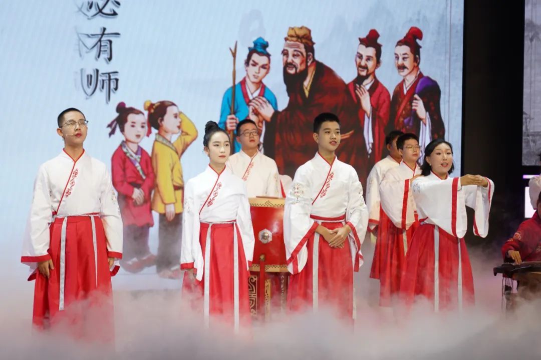 聆听历史的余音,撷取圣贤的智慧。求学于师,教学相长,学生们吟诵《师说》,开学典礼拉开序幕。