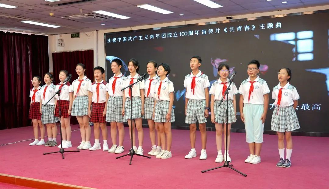 小学部晨曦合唱团、中学部穗月合唱团表演《祖国有我》。
