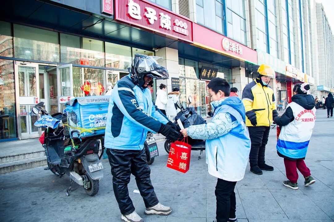 仁和镇鼎顺嘉园社区“鼎呱呱青少年志愿服务队”为骑手送上礼物,用实际行动传递对新业态劳动者的尊重与关爱。