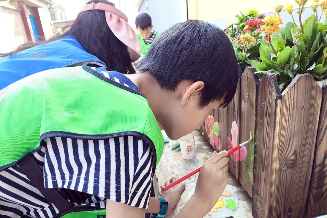 南彩镇南彩村街巷小管家积极参与彩绘花箱活动,美化家园。