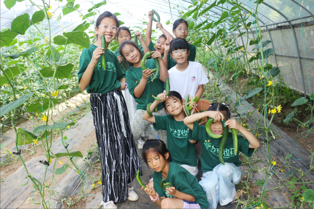孩子们在龙湾屯镇大地小脚丫自然营地感受亲手劳动收获的甘甜。