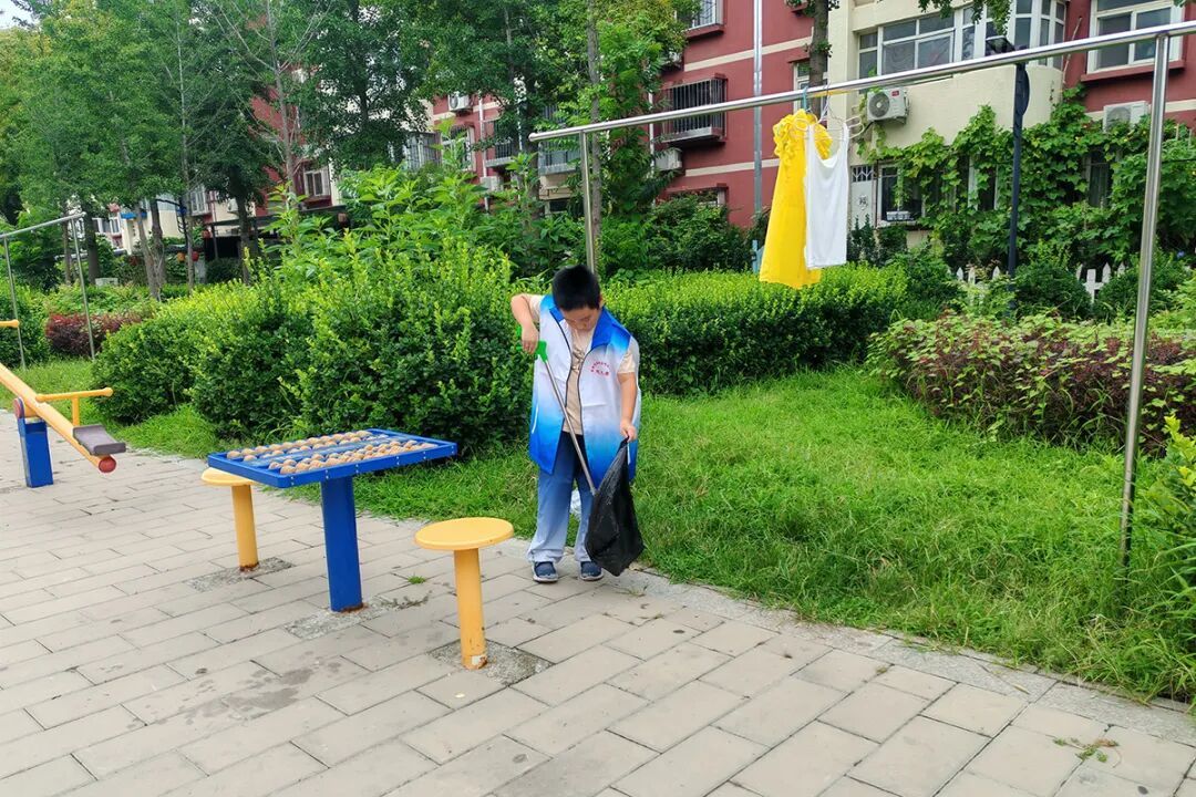 高丽营镇丽喜花园社区儿童志愿服务队开展志愿服务,培养孩子的责任感。