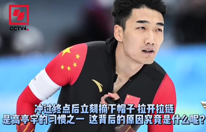北京冬奥会速度滑冰男子500米冠军高亭宇有个习惯,冲过终点后会立刻摘下帽子,拉开拉链。这背后的原因是什么?