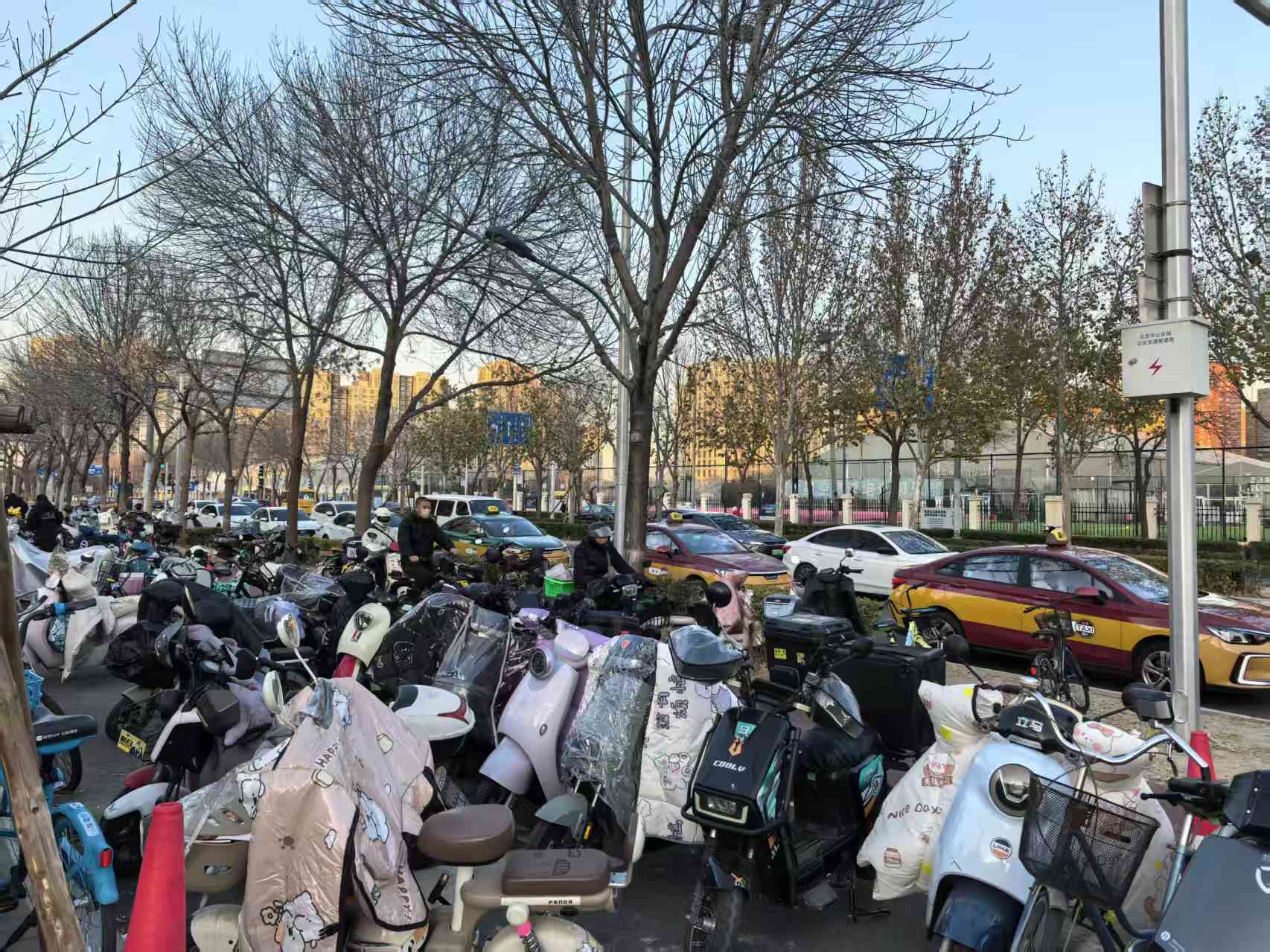 工作日下午,朝阳医院常营院区东门附近车来人往、熙熙攘攘。就医患者络绎不绝,电动自行车、共享单车在东门外的东十里堡路人行便道、非机动车道甚至绿化隔离带里停得满满当当,绵延一两百米,行人、过路的非机动车得在缝隙中穿行。机动车道上更是时不时发生拥堵,车辆排长龙。记者观察,进出医院的私家车,送医停靠路边的网约车、出租车,再加上东门南侧约100米处的红绿灯路口,多重因素叠加,让医院东门前道路的通行效率大打折扣。几位市民说: