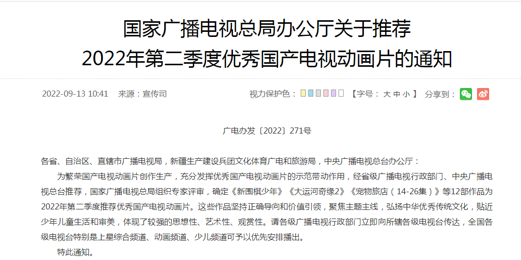 最近,国家广播电视总局公布了2022年第一、二季度优秀国产电视动画片名单。快来带孩子一起看吧!