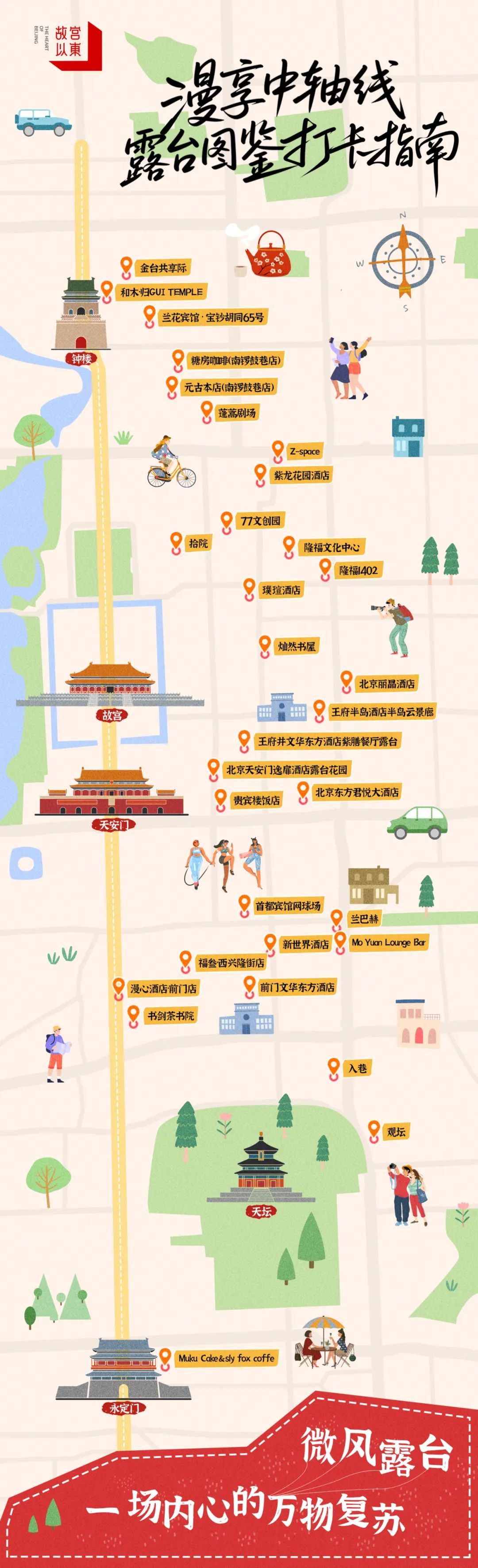 “生活节奏太快了,慢下来。”前不久,东城区启动“微风露台计划”,东城区委书记孙新军向市民游客发出邀请:“到东城的露台坐坐”。30余处精选露台串联起7.8公里的中轴线。“在中轴线保护与利用上,我们统筹推进历史风貌保护与消费场景创新,将消费触角从地面延展到更高的露台。”东城区文旅局相关负责人说。