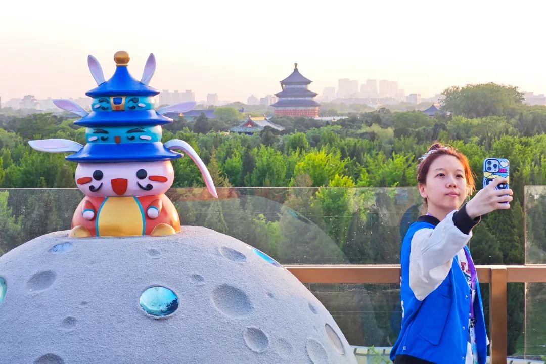 当夕阳为天坛祈年殿镶上金边,红桥市场五层露台的观坛艺术空间迎来一天中最生动的时刻。游客举着祈年殿造型的慕斯蛋糕,与远处的真实殿宇同框定格。600年历史轻盈地融入当代人的下午茶。