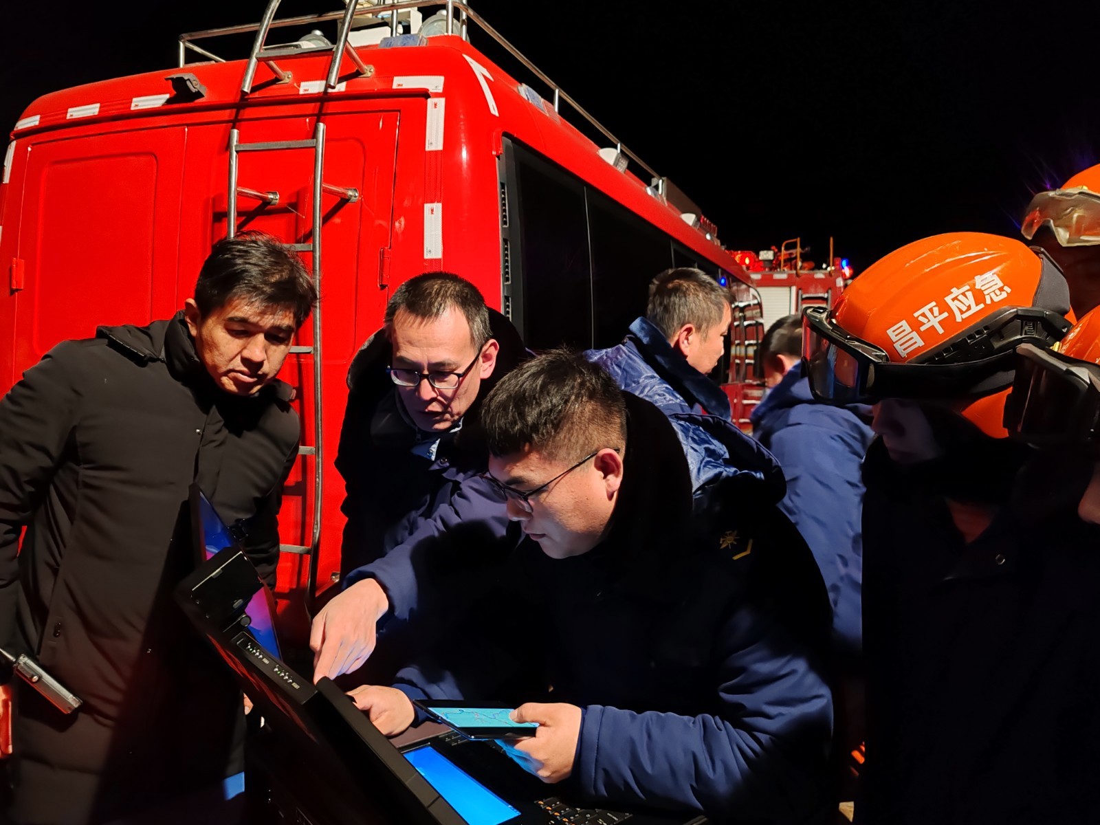接到求救信息后,区应急局指派森防大队携带照明灯、救援绳、急救包、2架M400无人机赶赴现场,十三陵镇政府、消防救援支队、公安昌平分局、昌平蓝天救援队同步启动涉险应急处置流程,移动、联通、电信三家公司出动通讯保障车、便携基站到现场开展通讯保障工作。救援共调派森林消防队员、消防指战员、公安民警、志愿者200余人,现场成立应急救援指挥部,制定“无人机红外定位+地面三组交叉搜索”方案。