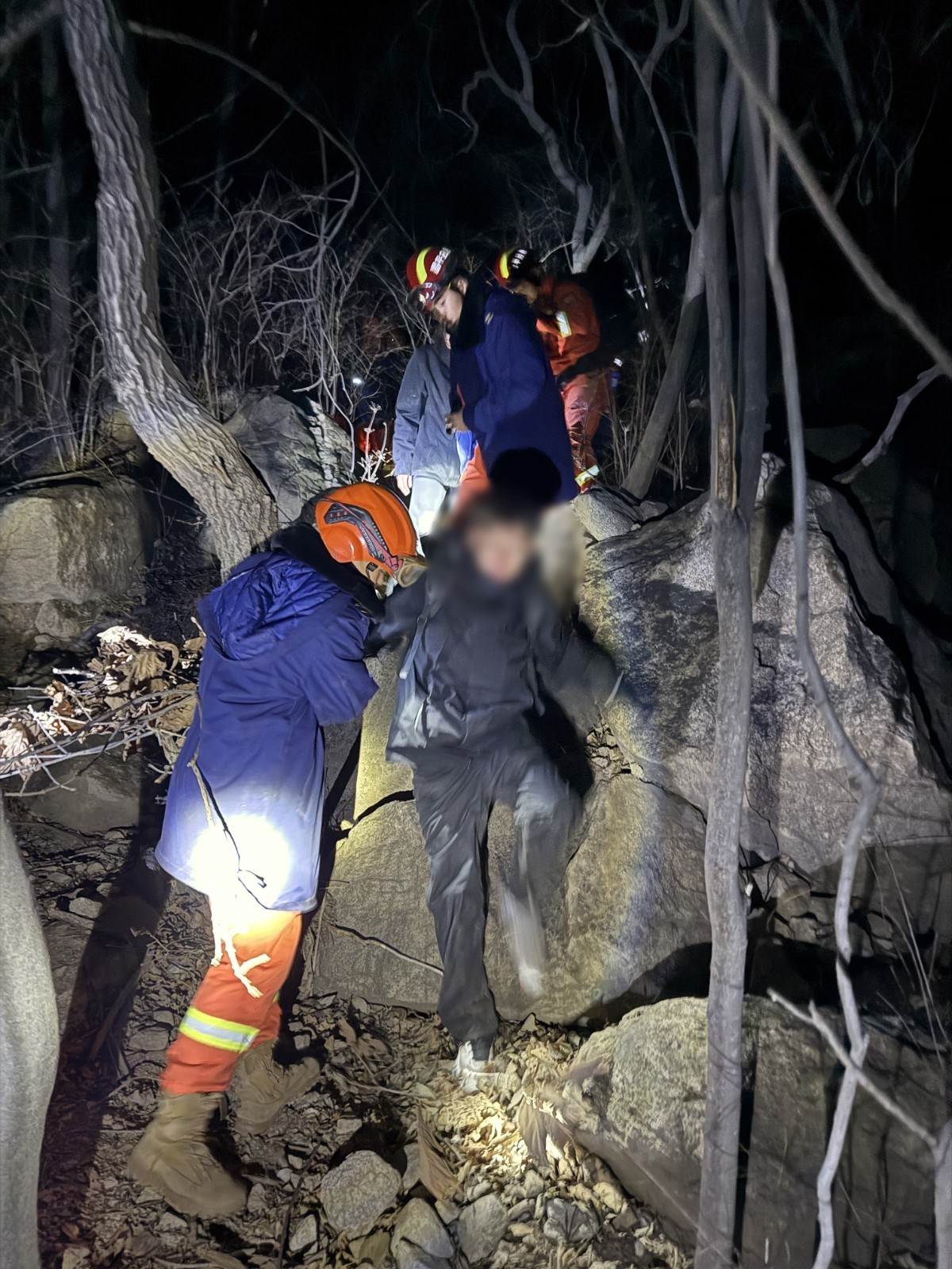 救援行动正在紧张有序开展之际,22时15分,区应急局再次接到紧急警情:在昌平区延寿镇某景区,发生3人走失情况。据悉,被困人员为3名成年人,从顺义境内登山,天黑后,因道路不熟悉,被困山上等待救援。