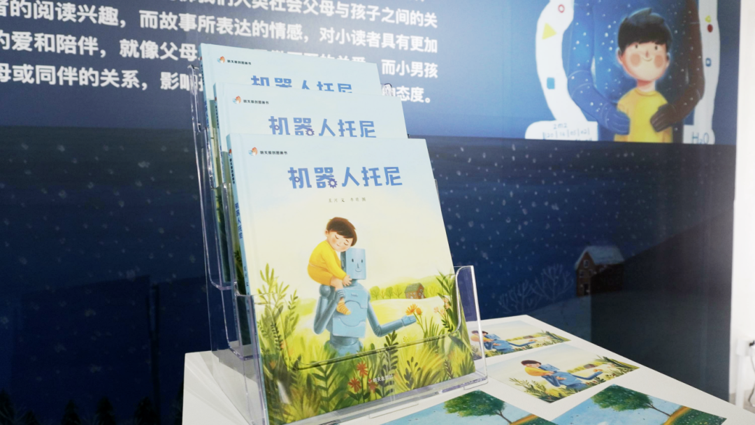 漫步双年展,用集群机器人讲述捞月故事的“猴戏”,能自主定位并收集狗粪的“PooBot”机器车,依靠传感器运行的仿生机械花装置,解决人们饮食管理痛点的饮食陪伴AI硬件,将中国花鸟画笔触实体化的机器鸟,由科幻作家星河与插画师李萌合作创作的《机器人托尼》绘本……一个个或有创意或有哲思的作品让人目不暇接。