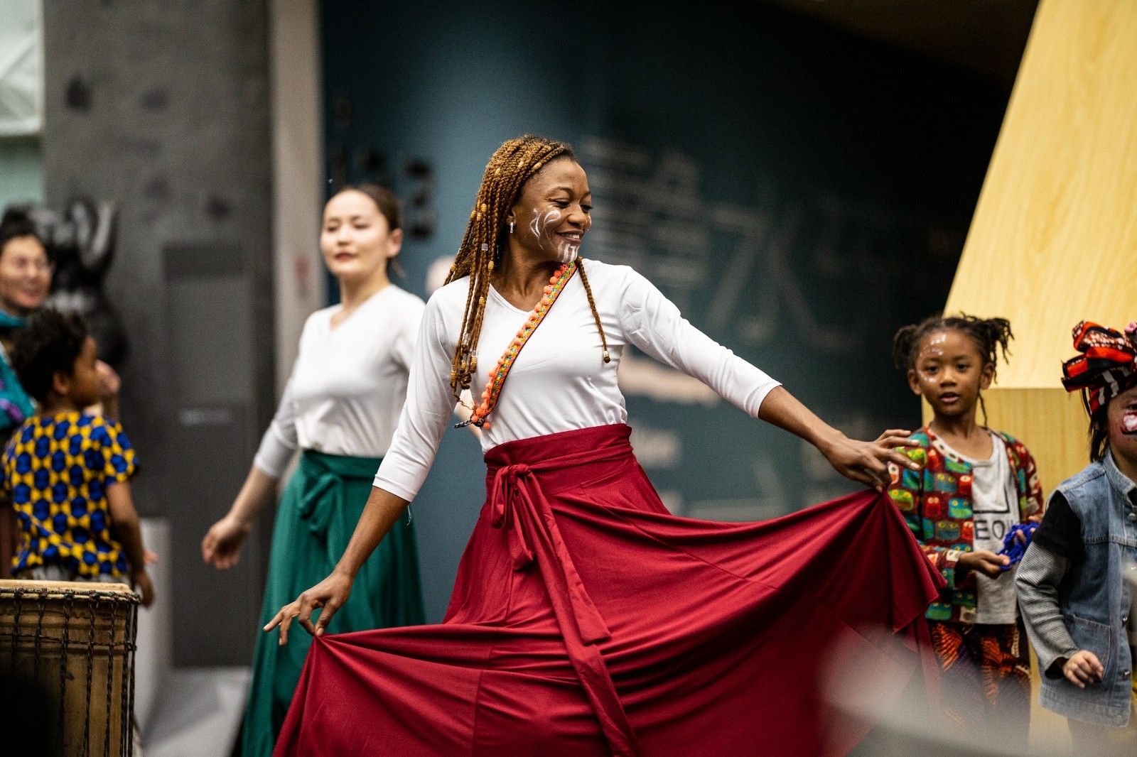 (记者 崔倩)4月27日,一场以非洲音乐舞蹈艺术为主题的公共教育活动在清华大学艺术博物馆上演。活动通过“面部彩绘”“非洲鼓舞”“服饰走秀”“乐舞互动”多个板块,探索身体与声音在艺术中的新表达,通过身体艺术与声音实验,激活非洲当代表达与中国当下感知之间的连接与共鸣,联通中非文化与艺术间的深层交流。