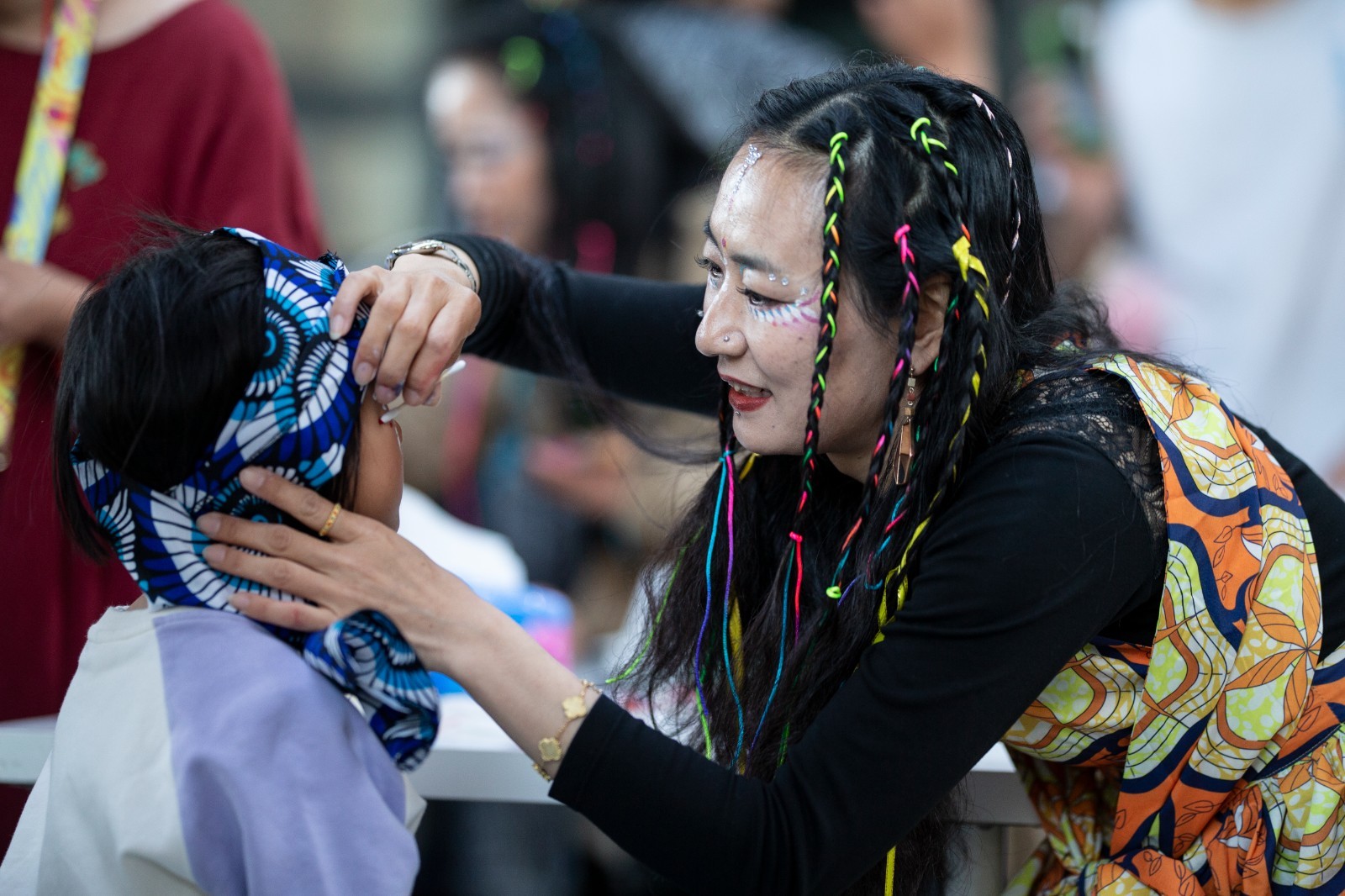 活动伊始,参与者可借鉴非洲传统面部彩绘的形式,自由地在脸上作画,用颜色表达当下情绪,让这幅独一无二的面部作品成为与自己身体对话的起点。