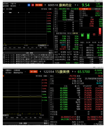 受上述消息影响,4月30日A股开盘后,康美药业股价遭遇一字跌停,报9.54元/股,公司最新市值475亿元。同时,15康美债(122354)一度大跌逾20%,上交所随后宣布盘中临时停牌。截至收盘,15康美债报65.5700,跌幅11.31%。
