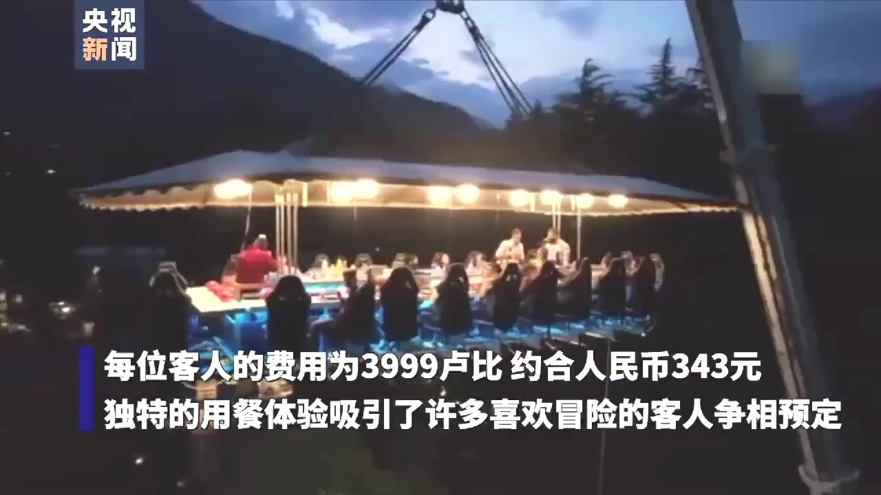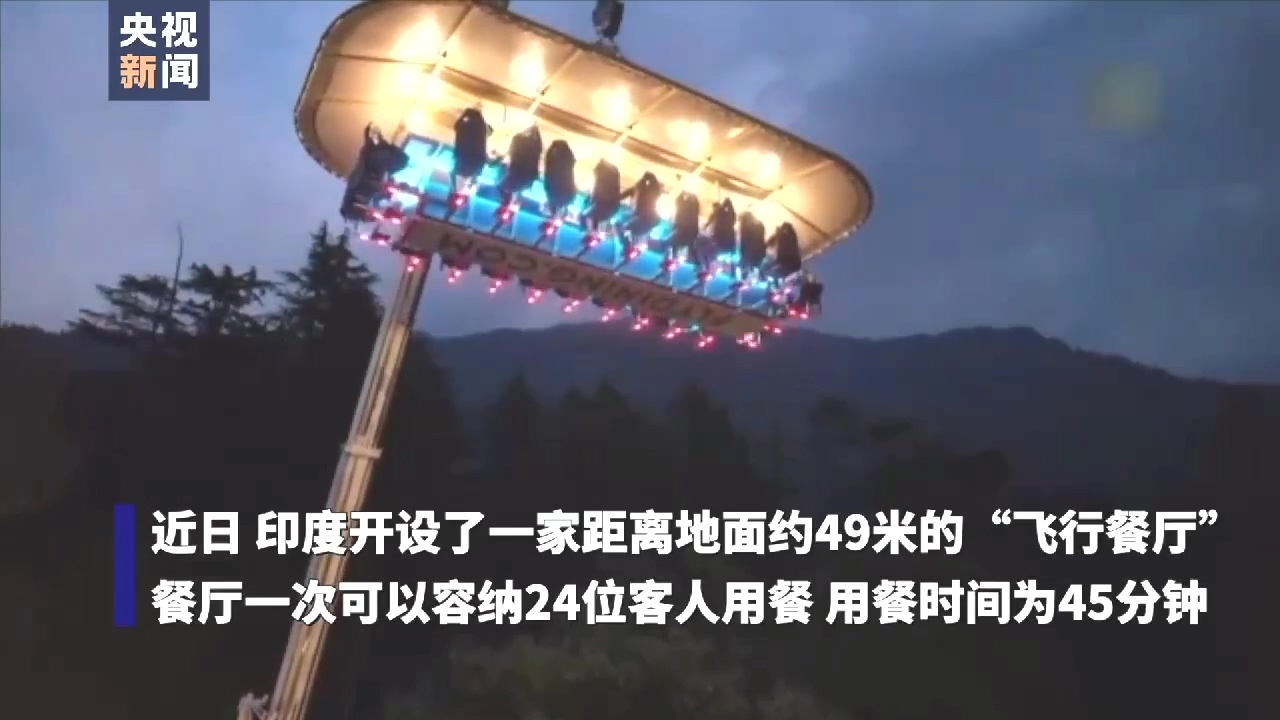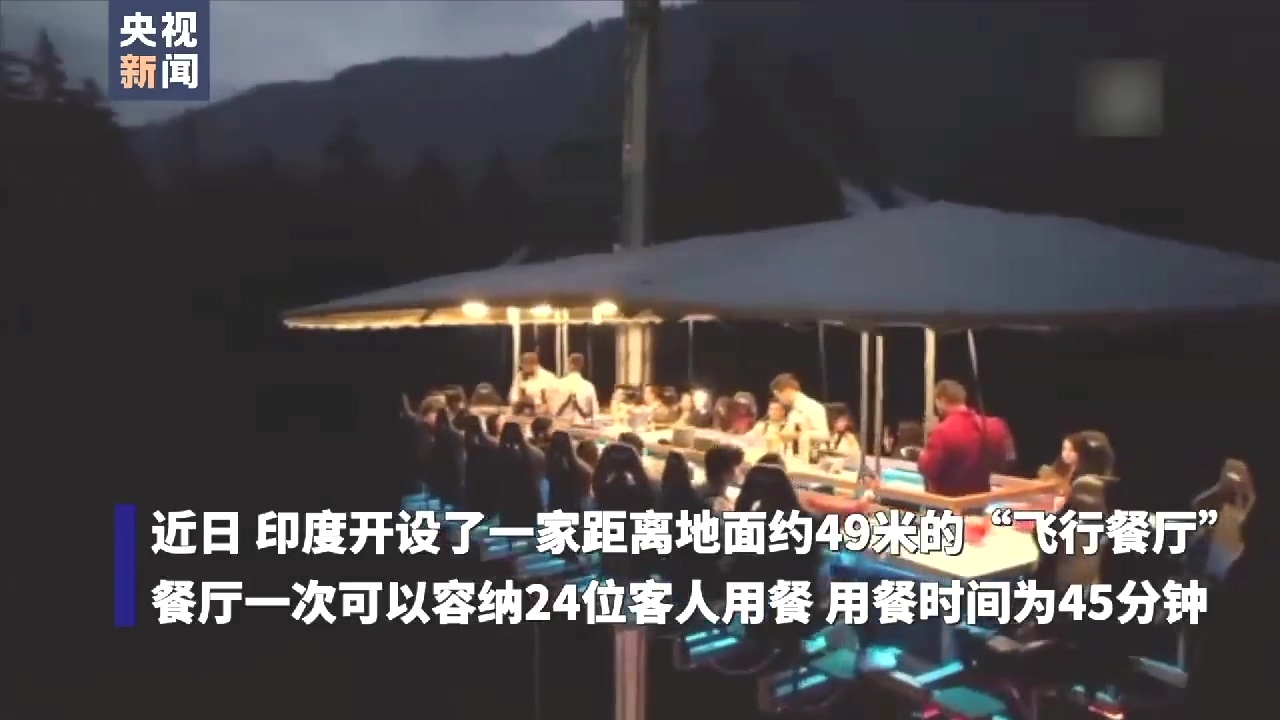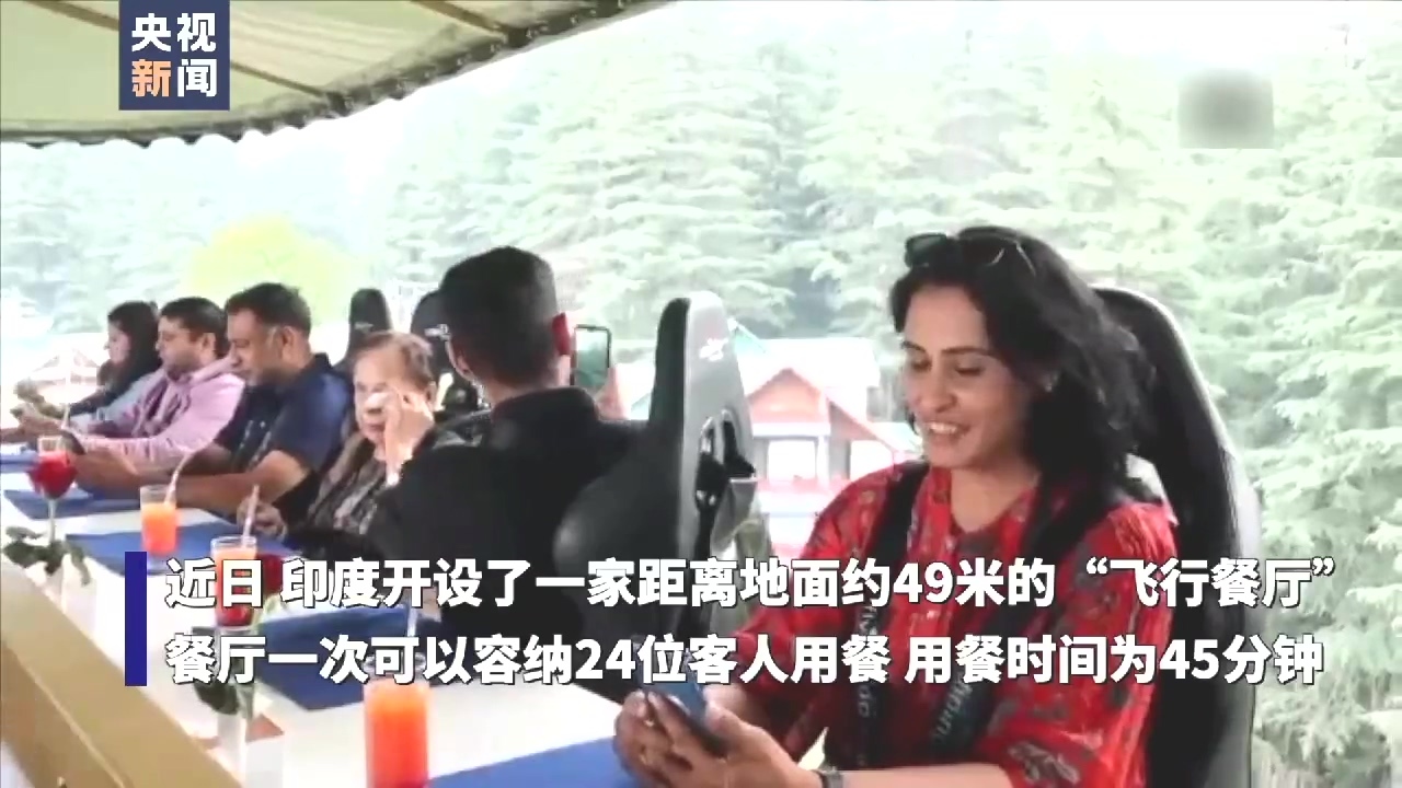 近日,印度马纳利市开设了一家距离地面约49米的“飞行餐厅”。餐厅一次可以容纳24位客人用餐,用餐时间为45分钟。每位客人的费用为3999卢比,约合人民币343元,独特的用餐体验吸引了许多喜欢冒险的客人争相预定。