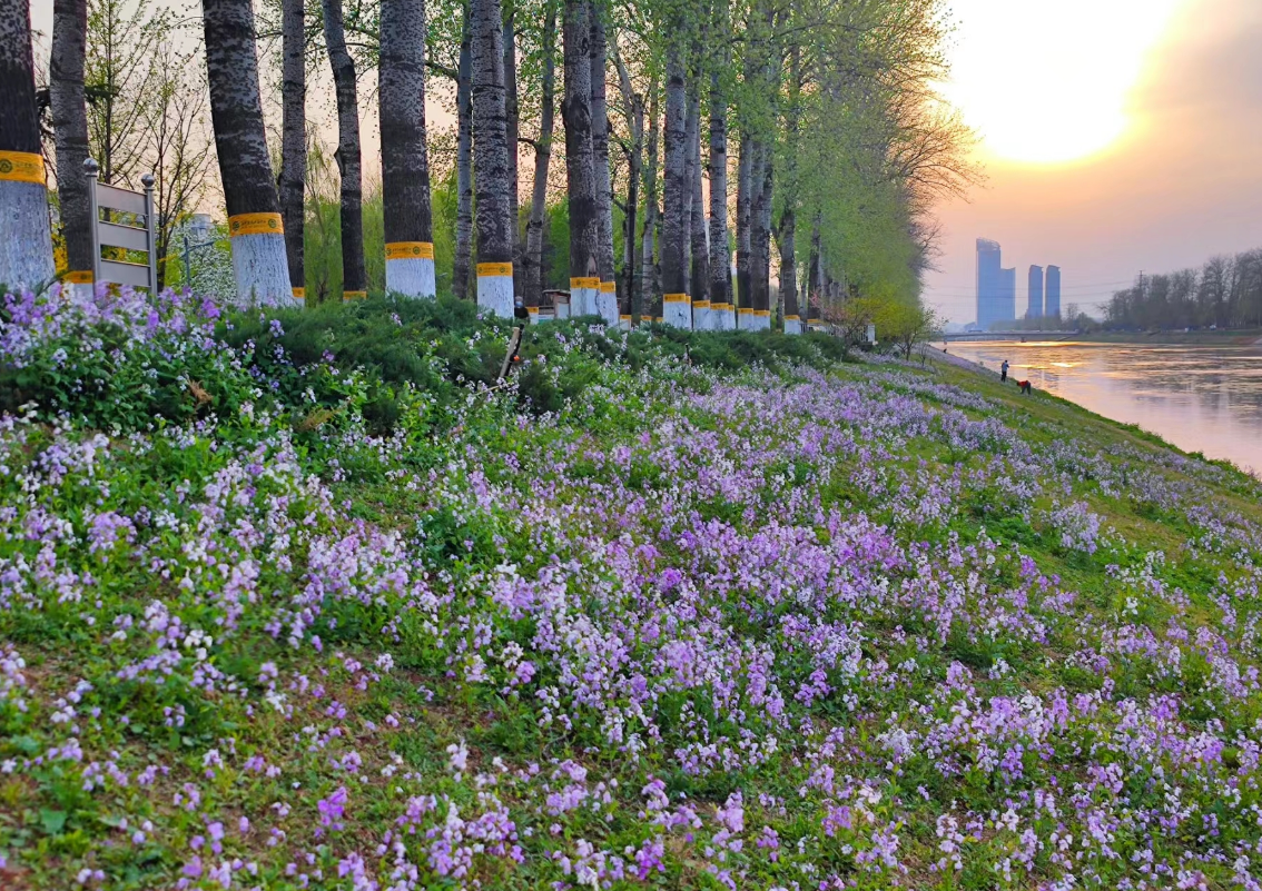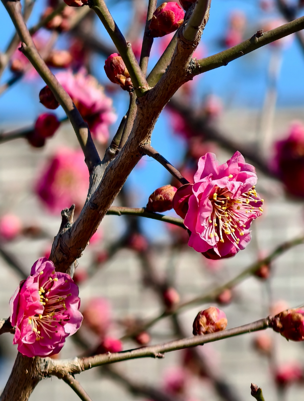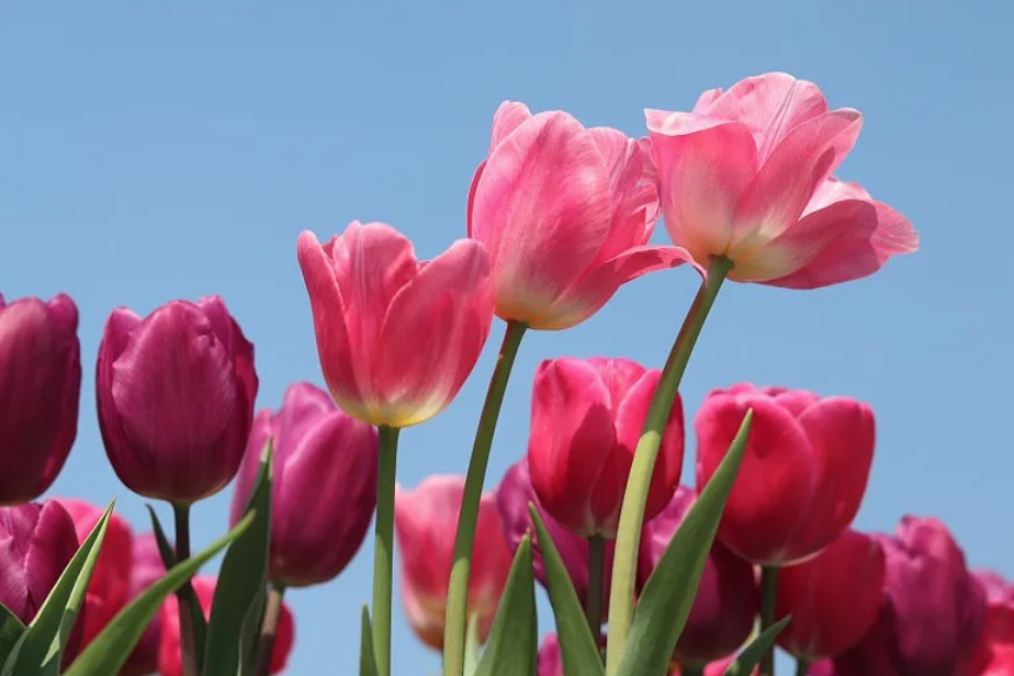 粉嘟嘟的花海与湛蓝的天空相映成趣