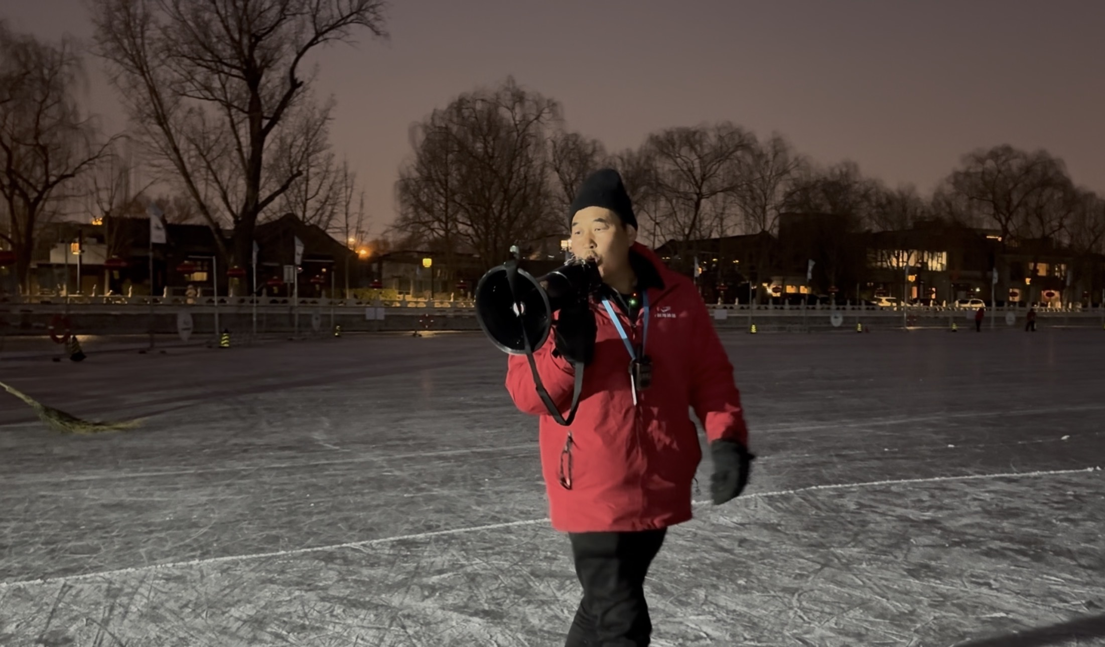 大家陆续离开冰场时,气温已降至零下2℃。什刹海冰场逐渐寂静,平整的冰面正等待着第二天游客们的到来......